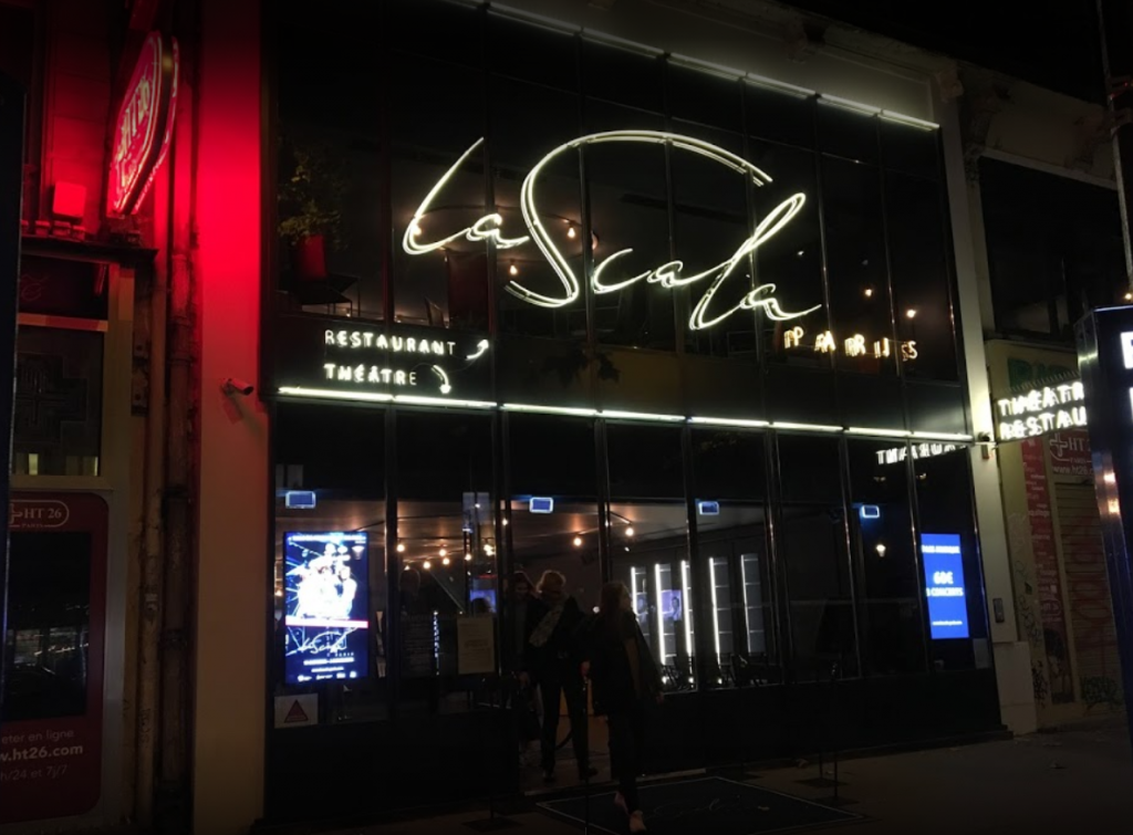 La salle, créée en 1874, fut un célèbre music-hall. En 1936, elle a été transformée en salle de cinéma Art déco. En 1977, elle est reconstruite et devient le premier multisalles de la capitale spécialisé dans le cinéma porno. Le 12 février 2016, la Scala a été rachetée par Mélanie et Frédéric Biessy qui en font un théâtre de 550 places dédié aux arts de la scène, à la musique et aux arts visuels ouvert aux créations françaises et internationales. La salle rouvre en 2018.